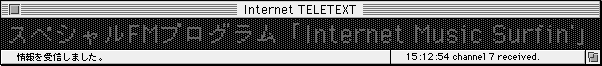Internet TELETEXTはインターネットの文字情報を受信するためのソフトウェアで、テレビのテロップのように文字が流れて情報を伝える。ユーザーはテレビやラジオのように、見たいチャンネルを選んで番組のデータを受信するだけ。あとは街角の電光ニュースのように眺めていればいい。ウィンドウには刻々と最新のデータが流れてくる。インプレスではInternet TELETEXT用にいくつかの番組を提供している。インプレスの新刊情報や、電子メールで毎日インターネット上のニュースを伝える「インターネット・ウォッチ」のダイジェスト、毎日新聞の総合ニュースなども提供している。新たに追加された番組には、TOKYO FMで放送している「Internet Music Surfin'」に合わせた、FMでは聞けない情報を、番組と連動して流しているものもある。なにか別のことをしながらでも、気軽に見ることができるのが嬉しい。