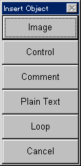 - ウィンドウの上部左から2番目の「Insert」ボタンを押すと、何を挿入するかを問い合わせるウィンドウが表示される(図3)。