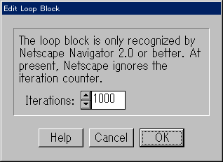 - さらに、用意した画像の連続再生を1回だけでなく、繰り返してアニメーションさせるにはLOOPを挿入する。さきほどと同様に「Insert」ボタンを押して、今度は「LOOP」を選ぶ(図6)。LOOPでは繰り返しの回数を指定できるが、繰り返し回数を認識しないブラウザーや、繰り返し自体を認識しないブラウザーでは指定できないことは覚えておいてほしい。